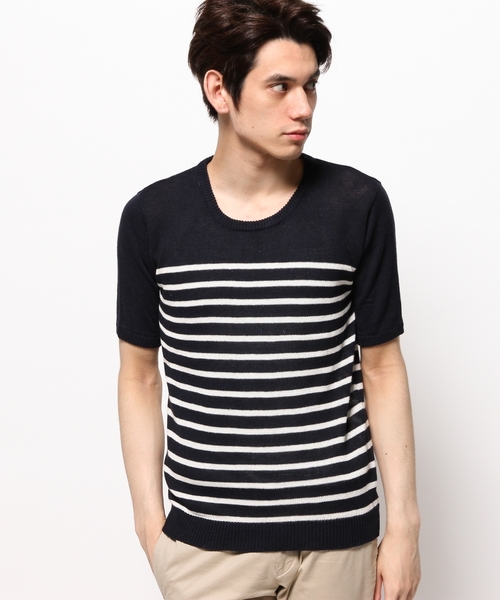 清涼感ある綿麻素材の半袖ニットトップス。 インナーとしても1枚着としても万能アイテムです。