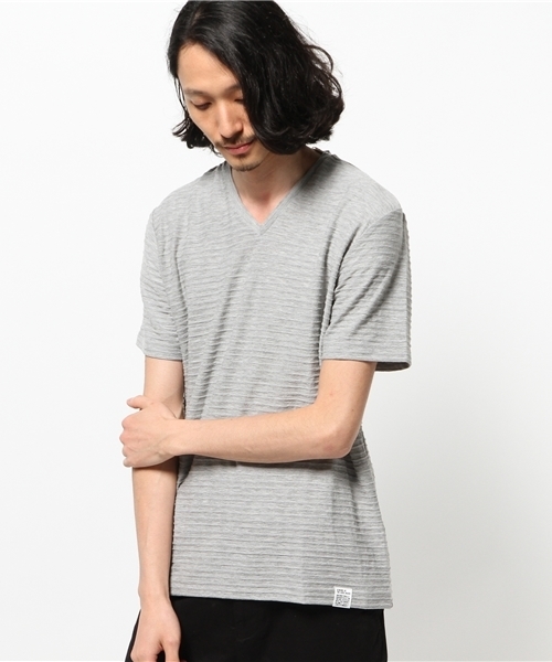 ボーダー状のラインが特徴的なタック天竺地の半袖プルオーバー。顔周りをきりりと引き締めるコンパクトなVネックで、カジュアルさとシャープさをバランスよくミックスしました。1枚着のシンプルな着こなしから、レイヤードインまで幅広く活躍してくれます。