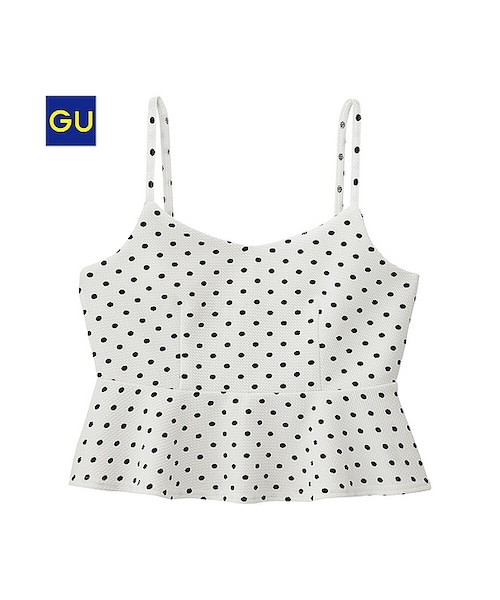 表面感のある素材にドット柄をプリントしたビスチェです。Tシャツの上に合わせるコーディネートがオススメです。 ※店舗とは取り扱い及び販売日が異なることがあります。