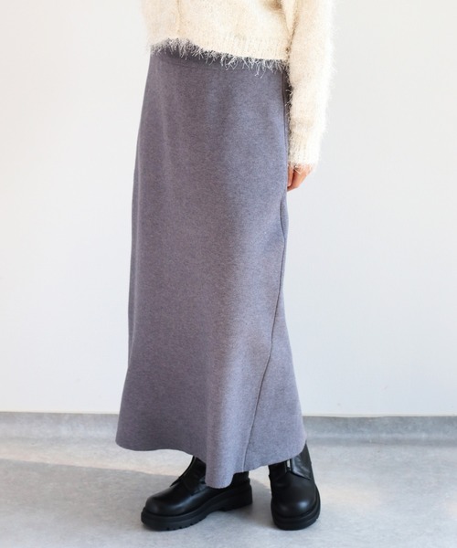 ストレートなシルエットがすっきりとした印象のミラノリブニットスカート。 ◇Point◇ 程よい厚みのミラノリブニットを使用したナロースカート。 ウエストゴムで楽に穿けて、ブーツ合わせしやすい丈感でデイリーユースに大活躍します! バックスリット入りなので足さばきも軽やかです。 ◇Material◇ レーヨン×ポリ×ナイロンの混紡素材。 もちもちした型崩れしにくいミラノリブニットなので、シルエットの美しさも損なわれません。 ニット生地ですがチクチク感もありません。 体にフィットする作りですが、伸縮性もあるのでリラクシーな着心地です。 ウエストはゴム仕様で+40cmほど伸びます。 ※透け感はありません。 ◇Coordinate◇ ニット、カットソー、ブラウスなど合わせる形や素材を選ばない優秀スカート。 ニット素材を使用しているためカジュアルアイテムとの相性◎ 今季はオーバーサイズのスウェットやニットを合わせて、モードな雰囲気を程よくカジュアルダウンするのがおすすめです♪ ブラウス、ジャケットを合わせればオフィスカジュアルや二次会にも対応できます。 ◇Model◇ 162cm 骨格ウェーブ 着用サイズ:M 158cm 骨格ストレート 着用サイズ:M ※照明や天候により実際の色味と異なって見える場合がございます。ご了承くださいませ。 【キーワード】 #Y2K#20代#30代#40代#50代#オフィスカジュアル