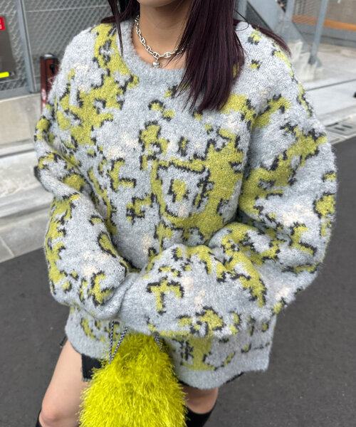 リラックス感引き立つカモフラージュニット▼ポイント遊び心満載のカモフラージュ柄、トライバル柄を取り入れた、旬なデザインニット。柔らかなブークレ素材が特徴で、肌触りも抜群。ルーズなシルエットで、トレンド感たっぷりのリラックススタイルが完成します。ラフな着こなしでも、おしゃれ感をしっかりキープできる一枚です。▼スタイリングカジュアルからストリートまで幅広いスタイルに合わせやすいアイテムです。デニムやスウェットパンツと合わせるだけで、簡単におしゃれなコーディネートが完成します。---------------------------------------------------透け感:なし伸縮性:あり裏地:なし光沢:あり---------------------------------------------------家庭洗濯:40℃限度/手洗い可タンブル乾燥:不可アイロン:低温110℃まで※スチームなしクリーニング:石油系溶剤による弱いドライクリーニング可,非常に弱い処理によるウェットクリーニング可---------------------------------------------------※着用、お取り扱いの際は、商品についている品質表示とアテンションタグを必ずご確認下さい。※画像の商品はサンプルです。実際の商品と仕様、加工、サイズが若干異なる場合がございます。※可能な限り実物に近いカラーにて掲載していますが、撮影環境やモニター環境などにより製品と画像のカラーがやや異なって見える場合もございます。予めご了承ください。【お買いものをよりお楽しみいただく為に!!】▼商品のお気に入り登録(ハートマークをクリック)お気に入りアイテムの完売カラーの再入荷通知や、ラスト1点の通知、セールの通知も受け取ることができます。▼ブランドのお気に入り登録新商品や再入荷、クーポン配布などのお得な情報を受け取ることができます。