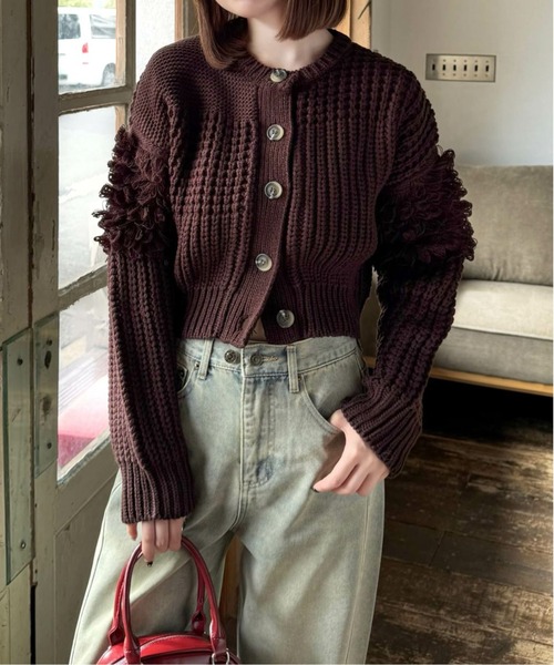 トップスとしても使える!編地切替ループニットカーディガン【デザイン】ざっくり編みでデザイン性のあるカーディガンです。袖にはボリューム感のあるループつきで、コーデのアクセントになります!程よい丈感でスタイルアップが叶います♪【素材感】弾力性のあるアクリルニット素材伸縮性:若干あり/ 透け感:若干あり/ 裏地:なし 手洗いによる洗濯可 / ドライ・ウェットクリーニング可【コーディネート】ボタンを開けて羽織りとしても、閉めてトップス使いとしてもご着用いただけます♪ハイウエストのボトムス合わせがオススメです◎【※お取り扱い上のご注意】1:モニター環境等により実際の商品と多少色味が異なって表示される場合がございます。予めご了承下さい。2:屋外で撮影された商品は、天候により多少実際のカラーと異なる場合があります。商品のカラーはトルソー(マネキン)の商品画像をご参照ください。3:濃い色の商品は、お洗濯や摩擦等による移染にご注意ください。4:末永くご愛用頂く為に、アテンションタグ・洗濯ネームを必ずご確認の上、着用又はお取り扱い下さい。5:生産時期により、色、サイズ、デザイン、素材の質感が多少が異なる場合がございます。あらかじめ御了承下さいませ。