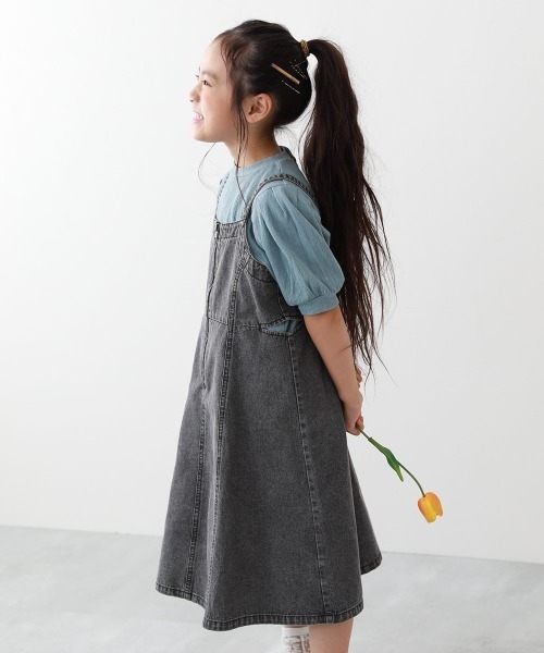 サイドからチラッとインナーの見えるデザインがポイント。 インナー次第で春から秋まで着回せるアイテムです。 ■素材 柔らかな肌ざわりをしたデニム素材 季節問わず着やすい柔らかな風合いが魅力。 程よい厚みで軽い着心地も特徴です。 伸縮性:なし ■スタイリング 春夏はTシャツやタンク、冬は薄手のニットと、インナー次第でロングシーズン着用できるアイテム。 カジュアルに着こなしたい日はスニーカーを、ちょっぴり背伸びしたい日はブーツなどを合わせて様々な着こなしを楽しんでみてください。 ■洗濯方法 洗濯機洗い可(弱い洗濯処理) / 漂白剤使用不可 / 乾燥機使用不可 / 日陰つり干し/ 洗濯ネット使用 ■ご注意事項 ・摩擦や水、汗などで色が移ることがあります。ご注意ください。 ・平置きにて採寸しているため、サイズや形に多少の誤差が生じる場合があります。あらかじめご了承ください。 ・生産時期により、多少色味が異なる場合がございますが、素材・サイズ等の品質に違いはございません。 ー devirockについて ー 子育てがもっと楽しくなる社会を目指し、親と子が感じる課題を解決する""新しいあたり前""を提案しています。 男の子・女の子のデイリーウェアを中心にラインナップ。ベーシックからトレンドまで幅広いデザインと、ベビーからキッズまでの豊富なサイズ展開が魅力の子供服ブランドです。