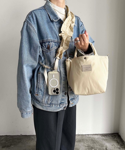 ふわふわの中綿が入ったミニトートバッグ。柔らかい生地を使用しており、触り心地が良く、軽量で持ち運びやすい!口元は巾着仕様。巾着をおとすとマグネットが付きなので、マグネットでの開閉も可能◎ギャザーのよったショルダーストラップは、取り外し可能。テープを引っ張ってギャザーを調整すると、ななめ掛けや肩掛けも可能◎また、ショルダー部分のみを使用し、スマホストラップしてもご使用いただけます♪スタイルに応じて使い分けられるアイテムです。A5サイズとコンパクトながらも、お財布・スマホなど必要な荷物がしっかりと入る容量。コンパクトで軽量なので使いやすい!本体:H21㎝×W31㎝×D17㎝持ち手:26㎝ショルダー部分:〜140㎝重量:約140g※サイズ詳細は平置きで測ったサイズです。また、商品ごとに重量等誤差がございます。多少の誤差は予めご了承ください。