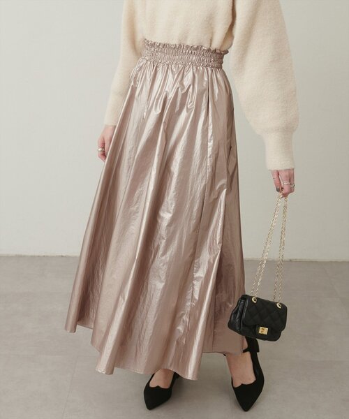 【2024AW natural couture】帰ってきた大人ナチュシリーズホリデーシーズンにぴったりの艶感スカート<大人ナチュ>程よいトレンド感と、ディティールにこだわり、大人の甘さを追求。いつまでも可愛いものが着たい、そんなあなたへ。■Design 着るだけで目を惹く、艶感が魅力のフレアスカート。ウエストはシャーリングでたっぷりとギャザーを寄せインしても可愛らしいデザインに。裾に向けて大きく広がるシルエットで揺れ感も◎。身体のラインを拾わないので腰回りもすっきりカバーしてくれます。総ウエストゴムに加え、後ろジップ付きで着脱も楽々。ホリデーシーズンにぴったりの1枚持っておきたいアイテムです。■Stylingウエストのシャーリングを生かしてリブニットなどと合わせるとスタイルアップ効果も出ておすすめ。お好みのニットやプルオーバーと合わせるだけで一気にコーディネートが映える主役級スカートです。■Fabric光沢感の強い滑らかな生地を採用。=========================お手入れ方法:手洗い透け感:なし裏地:ありポケット:なし伸縮性:なし光沢感:あり生地感:柔らかく滑らかな生地=========================※着用、お取り扱いの際は、商品に付いている品質表示とアテンションタグを必ずご確認ください。【お気に入り登録でお得な情報がいっぱい】・「商品のお気に入り登録」で再入荷通知や、ラスト1点の通知、セール通知をいち早く受け取ることができます。・「ブランドのお気に入り登録」で新商品や再入荷など、お得な情報を受け取ることができます!※店舗の入荷時期は商品によって異なります。店頭の在庫状況につきましては各店舗にてお問い合わせください。※撮影時の光の関係で、画面上の画像と実際のお色とでは若干の色差が生じる可能性がございます。また、ご覧いただいているモニター画面や、お使いのブラウザによっても、お色の違いがございますことをあらかじめご了承くださいませ。202411222024AW_natu24AW