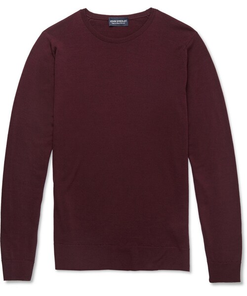 The merino wool used by John Smedley is carefully sourced from farmers in New Zealand before being spun in Great Britain and this fine-knit sweater demonstrates the impeccable results. Dyed a deep shade of port-red, this surprisingly lightweight and soft piece makes a sumptuous addition to your staples. Team it with classic navy outerwear or charcoal suiting for a considered combination. Shown here with a Gucci shirt , Burberry London suit , Gieves & Hawkes pocket square , Drake's pocket square and tie and John Lobb shoes . Port-red merino wool sweater Crew neck, ribbed trims 100% extra fine New Zealand merino wool Machine wash or dry clean Made in Great Britain