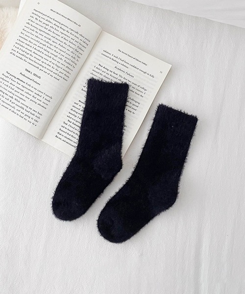 ふわふわ素材で寒い季節にぴったりな靴下。柔らかく肌触りのいい生地は、保温性も抜群!カラーバリエーションが豊富で、コーディネートに合わせやすい優しいカラー展開。シンプルなデザインのため、デイリー使いにぴったりです♪