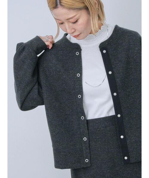 圧縮ウールライク生地で上品な印象に仕上げたカーディガン。 ふっくら柔らかなボリューム感のあるスリーブが、女性らしい表情をプラスしてくれます。 前後どちらでも着用可能な2WAY仕様になっており、着こなしの幅が広がるのも魅力ポイント◎ ワードローブに是非取り入れたい、着回し力の高いアイテムです。 ※商品画像は、撮影環境やお客様のご利用のPC・スマートフォンのモニター環境などにより実物と色味に差異がある場合がございます。