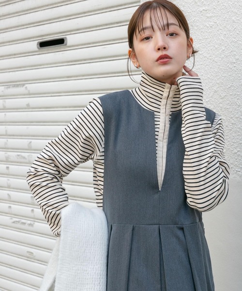 【首元のホック開き仕様が珍しいボーダートップス】 首元のホック開きが特徴的なボーダートップス。ホックは全て閉じてタートルとして着れるだけでなく、少し開き襟のようにしても雰囲気が変わるのでおすすめ。また、前後2WAYの着用可能なところや、メイン使いのみならずインナーとしても重宝します。 COORDINATE メイン使いはもちろん、ジャケットやジャンパースカートのインナーとしても使用いただけます。ベーシックアイテムに合わせるだけで着映えします。 【2024 Autumn/Winter】【24AW】 ※商品画像は、光の当たり具合やパソコンなどの閲覧環境により、実際の色味と異なって見える場合がございます。予めご了承ください。 ※商品の色味の目安は、商品単体の画像をご参照ください。 ▼お気に入り登録のおすすめ▼ お気に入り登録商品は、マイページにて現在の価格情報や在庫状況の確認が可能です。 お買い物リストの管理に是非ご利用下さい。 素材感 透け感 : なし 伸縮性 : あり 裏地 : なし 光沢 : なし ポケット : なし One