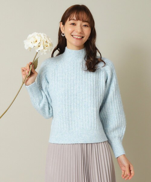 【デザイン】 ワイドリブ編みのカジュアル感が可愛いニット。 もっちりと柔らかな風合いが魅力。 カジュアル感が可愛いメランジ調カラーと絶妙に毛吹き感のある素材が特徴。 もっちりとした弾力のある編地でしっかりとした肉感があります。 短めの丈感でバランスよく着られ、大胆なボリュームの袖がアクセントになります。 ハイネックデザインで首元までしっかり暖かく、コートINにも◎ 秋冬のコーディネートに明るさと鮮度をプラスしてくれる、カラフルなカラーリングもポイント♪ 【素材】 しっかりとした肉感でもっちりと弾力のある風合いのニット素材です。 ※照明の関係により、実際よりも色味が違って見える場合があります。また、パソコン・スマートフォンなどの環境により、若干製品と画像のカラーが異なる場合もございます。 モデル情報:身長171cm B80 W59 H88 着用サイズ:00(フリーサイズ) 店舗へのお問い合わせ商品番号:P93-19018 ●製品寸法: 00(フリーサイズ):着丈50cm B100cm 裄丈72cm 備考: