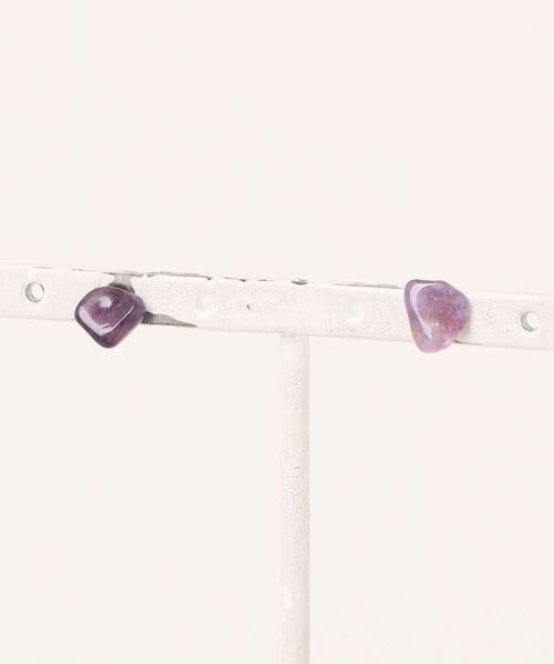 透明感のある紫色の天然石、アメジストのシンプルなピアスです♪ 自然のままの形をいかした、原石カットの綺麗な石を選びました。 アメジストの石言葉は「冷静、心の平和」。 2月のお誕生石としても人気のある石です。 ピアス金具は高品質の14kgf(14金ゴールドフィールド)製。 小ぶりなのでマスクの邪魔にもならない、デイリーにつけやすいピアスです☆