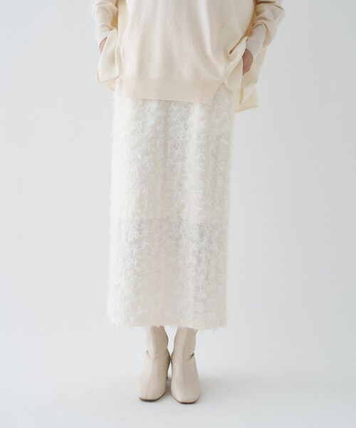 トレンドのシャギージャカードが魅力の華やかニット 〈デザイン〉 ・毛足の長いシャギート程よいラメ感が女性らしい印象に。 ・スタイリングによって、デイリーからオケージョンシーンまで活躍できます。 ・ウエストゴムはバックゴムでリラクシーな履き心地。 ・通年着用可能で、シーンに合わせたスタイリングを楽しめます。 〈素材〉 ・毛足の長いカットジャカード素材 ・大人の透け感のあるエアリーな素材。 ・※アイボリー(004)はやや透け感があります。 ・ウォッシャブル加工(手洗い可) 〈着こなしポイント〉 ・ニットやブラウスにも幅広いアイテムにマッチ。 ・スウェットなどあえてカジュアルなアイテムとのスタイリングもお勧め。 ・シアー感のあるブラウスでオケージョンシーンまでマッチします。 ーーーーーーーーーーーーーーーーーーーーーーーーーーーーーーーーーー 気になるアイテムはお気に入り登録がおすすめ! お気に入り登録で、再入荷通知やお値下げ情報をお知らせ。 お得な情報をいち早くお届けいたします! アイテムページにある、ハートマークをクリックして追加できます。 ーーーーーーーーーーーーーーーーーーーーーーーーーーーーーーーーーー ※照明の関係により、実際よりも色味が違って見える場合があります。また、パソコン・スマートフォンなどの環境により、若干製品と画像のカラーが異なる場合もございます。 店舗へのお問い合わせ商品番号:R91-79007 ●製品寸法: 01(S):W60cm H92cm 総丈85cm 02(M):W64cm H96cm 総丈86cm 03(L):W68cm H100cm 総丈87cm 備考: