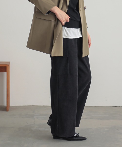 あったか裏ベロアのコーデュロイカーゴパンツ。一度穿いたら手放せない、季節感たっぷりコーデュロイ生地のお洒落パンツ。「暖かさ」と「お洒落さ」を欲張る、大人女子のための優秀アイテムです◎ふんわり優しい着心地のあったか裏ベロア。表側は滑らかなコーデュロイ生地で、裏側はふんわり優しい肌触りのベロア生地を使用し、穿いた瞬間からやみつきになる穿き心地に。寒い季節も安心してお洒落を楽しめる、暖かく保温性もある優秀素材です。すっきりシルエットで身体のラインを拾いすぎず着回し力が高いアイテム。キレイめからカジュアルまで様々なスタイリングをお楽しみいただけます。■機能性についての注意書き保温について生地の特性なので、洗濯を繰り返しても半永久的に効果が持続します。