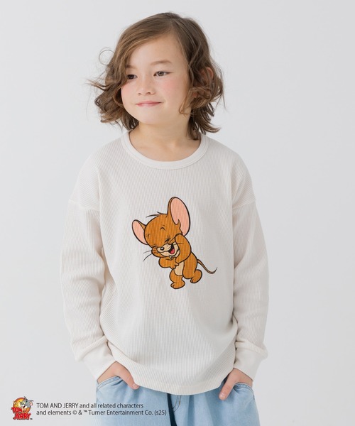 「トムとジェリー」がキュートにデザインされたワッフル生地のロンT!思わず笑顔になっちゃう楽しいプリントデザイン。 ゆったりとしたシルエットでリラックスした着心地です。 肌触りがやさしく、通気性に優れたワッフル生地なので長時間の着用でも快適!