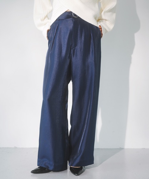冬場のニットに合わせやすいシャイニーボトムが登場!◆2024-25秋冬◆【デザイン・シルエット】控えめなシャイニー感が大人っぽいワイドシルエットのウエストDカンベルト付きパンツです。バックウエストはゴム仕様なので、リラックス感もあり、キレイ目なカジュアルスタイルが楽しめます。 【素材】程良い厚みとシボ感のある光沢素材です。冬には嬉しい裏地付き。気軽に洗濯機洗いができるのも嬉しいポイントです。 【カラー】色々なカラーのトップスとコーディネートし易いダークブラウンとネイビーの2色展開。※サテン素材のため、室内と室外や光が当たるところでは少し色味の見え方が違って見えます。 【おすすめのスタイリング】フワモコ系のHUGニットと合わせて女らしいスタイリングが◎レッドカラーのニット×ダークブラウンのシャイニーワイドパンツは今シーズンのおススメカラーコーデ! ----------------------------- 裏地:あり(膝下丈) 光沢感:あり 透け感:なし 伸縮性:なし ウエスト:後ろ一部ゴム ファスナー:あり ポケット:あり 生地の厚さ:やや厚手 その他仕様:ベルト付き 季節:春、秋、冬 ----------------------------- 【モデル着用サイズ】全色モデル身長:168cm、着用サイズ:M(画像9枚目?モデル身長:164cm 骨格:ナチュラルとストレートのミックス 着用サイズ:M) ※画像の商品はサンプルです。 実際の商品と仕様、加工、サイズが若干異なる場合がございます。 ※画像によっては実際の色味と異なる場合があります。正しい色味は生地アップ画像をご確認ください。