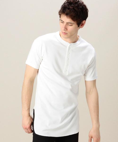 胸元にほどよく存在感があるヘンリーネックのTシャツです。ボタンやステッチのカラーを生地と揃えることで、上品な印象にまとまっています。着丈は長めでニュアンスがたっぷり。裾のサイドのカッティングが深く、タックアウトしたときにもすっきりと見えるのが特徴です。店舗にてお問い合わせの際は、全国のBEAUTY&YOUTH 各店舗まで下記の品番をお申し付け下さい。品名:MT 30FRISU LONG HLY S/SL 品番:1282-113-0453