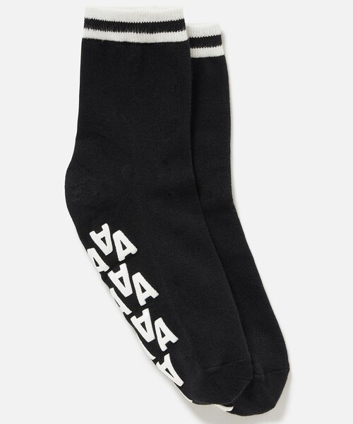 機能的でアイコニックなグリップショートソックス 素材の特徴 レーヨン×ポリエステル×ポリウレタンの混紡素材 サイズ感 レギュラーフィット 足底にAIGLEの「A」モチーフの滑り止めが付いたショートソックスです。ラバーブーツやスニーカーの中で足が滑ったり動いたりするのを防ぎます。履き口のアイコニックなダブルストライプがデザインのポイントに。