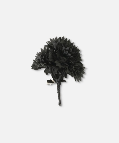 【select 2024 autumn&winter】 植物の美しい輪郭に着目し、それぞれの個性をモノトーンで表現したシリーズ。可憐なカーネーションの花々をイメージし、透け感のある生地を何層にも重ねて仕上げました。枝の部分には艶やかなサテン素材を用い、より気品あふれる見た目に。黒1色で構成することで甘さは抑えられ、クールさやシャープな印象も保てます。ハンドメイドでお作りしております。ストラップドレスに留めたり、カットソーにランダムでつけてアーティーな雰囲気を演出するのもおすすめです。 ※照明の関係により、実際よりも色味が違って見える場合がございます。 またパソコン・スマートフォンなどの環境により、製品と画像のカラーが異なる場合もございます。 予めご了承ください。