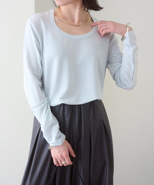 ご好評につき新色ブルーが新登場!人気のNowhereシリーズにUネックデザインがアップデートして登場!・女性らしいラメ感のあるロングTシャツ。・ネックが広めなので、程よく肌見せスタイルが叶います。・前後2WAYなので、タグを前にしたスタイリングもお楽しみいただけます。・ニットやジャケットのインナーとしてはもちろん、春先は1枚で透け感を楽しむのも◎・透け感:あり・裏地:なし ・伸縮性:あり・生地の厚さ:やや薄手・光沢:あり・ポケット:なし<洗濯方法>手洗い可能-------------------------------------・着用モデル 身長:158cm / 体型:普通身長:162cm / 体型:普通-------------------------------------- 【商品のお気に入り登録】♡をクリックで気になるアイテムをお気に入り登録していただくと、以下の通知を受け取ることができます。・入荷・再入荷・ラスト一点・セール対象時【ブランドのお気に入り登録 】 新商品や再入荷、セール、クーポン配布などお得な情報を受け取ることができます。--------------------------------------※画像の商品はサンプルです。実際の商品と仕様、加工が若干異なる場合があります。※商品の色味は、撮影場所や光の当たり具合などにより色味が異なって見える場合がございます。また、お客様のお使いのPC・スマートフォン等のモニター環境などにより色味が異なって見える場合がございます。予めご了承の上ご注文ください。