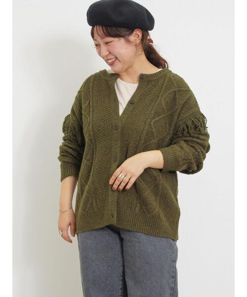 ふわふわなフリンジとケーブル柄の切替がポイントになったニット。前後どちらでも着用可能な2WAY仕様になっていて、プルオーバーとしてもカーディガンとしてもスタイリングを楽しむことができます。フリンジが華やかな存在感をプラスし、コーディネートのアクセントに映えるアイテムです。※商品画像は、撮影環境やお客様のご利用のPC・スマートフォンのモニター環境などにより実物と色味に差異がある場合がございます。