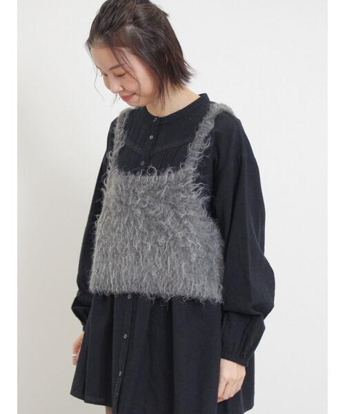 ふわふわとした起毛ニットがあたたかいビスチェ。 リボンのワンポイントもキュートなアクセントをプラス。 前後どちらでも着用可能な2WAY仕様になっており、異なる表情を楽しめるのが魅力です。 プラスワンするだけで、シーズンらしいこなれ感のあるスタイリングに決まるアイテム。 ※商品画像は、撮影環境やお客様のご利用のPC・スマートフォンのモニター環境などにより実物と色味に差異がある場合がございます。