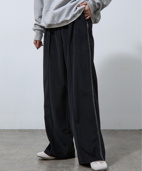 【すっきり暖かいラメ入りラインパンツ】ベロアスカートと同じ生地感で、柔らかく肌触り◎ウエスト部分は総ゴム仕様で調節も可能センターラインが入っているのですっきりスタイルアップにも【商品ポイント】・ウエスト総ゴム仕様・サイズ調節可能・冬でも暖かいベロア素材----------------------------------------------------■商品特徴洗濯方法:手洗い可裏地:なし透け感:なし伸縮性:なし光沢感:ややあり生地の厚さ:普通----------------------------------------------------■素材ポリエステル100%----------------------------------------------------※着用、お取り扱いの際は、商品についている品質表示とアテンションタグを必ずご確認下さい。※商品タグに記載されている商品名がWEBでの表記名と異なる場合があります。※画像の商品はサンプルです。実際の商品と仕様、加工、サイズが若干異なる場合がございます。 ※照明の関係により、実際よりもやや明るく見える場合がございます。またパソコンなどの環境により、若干製品と画像のカラーが異なる場合もございます。予めご了承くださいませ。【お気に入り登録】してお得な情報をCHECK!!・「商品のお気に入り登録」で再入荷通知や、ラストの通知、セール通知も受け取ることができます。・「ブランドのお気に入り登録」で新商品や再入荷など、お得な情報を受け取ることができます。