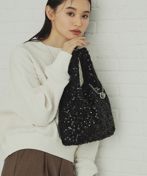トレンド感あふれる華やかなスパンコールハンドバッグ・キラキラとした華やかな印象のスパンコール素材を使用・シンプルなデザインで素材の個性を活かしたバッグ・持ち方のアレンジも可能【デザイン】トレンドのシャイニー素材を使用したコンパクトなハンドバッグ。キラキラしたスパンコール素材を使用し、シンプルなハンドバッグに仕上げました。持ち方アレンジで、両方の持ち手を持つ通常の持ち方と、片方の持ち手をもう片方の持ち手に掛けてワンハンドル風の持ち方の2通りの持ち方が可能です。持つだけでスタイリングのポイントにもなるキャッチーなアイテムですが、シンプルなデザインなのでサブバッグとしても使いやすくおすすめです。【仕様】・ポケット数:内側×1※照明の関係により、実際よりも色味が違って見える場合があります。また、パソコン・スマートフォンなどの環境により、若干製品と画像のカラーが異なる場合もございます。店舗へのお問い合わせ商品番号:C71-19092●製品寸法:00:高さ40cm 幅(上部)24cm 幅(下部)24cm マチ8cm 持ち手上がり13cm 付属チャーム全長11.5cm モチーフH2.4cm モチーフW2.4cm備考:重量:約155g