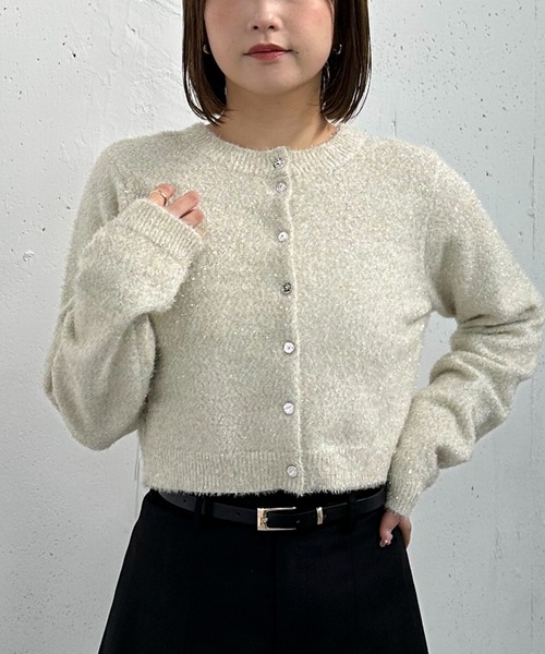 ■ラメがひときわ目を引く■ キラキラのラメが主役級のカーディガン。 着るだけで目を引く一枚です。 コンパクトにスッキリと着られるサイズ感。 クルーネックで女性らしく着用出来ます。 シルバーのボタンはワンポイントに。 控えめながらもしっかりとスタイリングに映えてくれます。 前後2wayで着用可能。 どんなボトムにも合う万能カーディガンです! ーーーーーーーーーーーーーーー 透け感:なし 裏地:なし 伸縮性:あり 光沢感:あり 生地厚さ:普通 洗濯方法:手洗い可 ※詳しいお手入れ方法は商品についているタグをご覧ください ーーーーーーーーーーーーーーー ※ご利用のモニター環境により、実際の色味と多少異なる場合がございます。 … information … 欲しいitemをお気に入り登録(♡マークをclick) ・お買いのがし対策…完売itemの再入荷やラスト1点の情報をお知らせ ・欲しいitemをお得にget…price downになったらいち早くお知らせ ・スムーズ検索…ZOZOのお気に入りアイテムページで簡単checkできるから、再検索不要♪