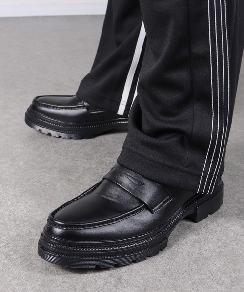 ハイソールローファー デザインは2型 コインローファー[ブラック系1] ビットローファー[ブラック系2] [素材・カラー] ●アッパーにはスムース素材を使用しており、本革に近い質感で、足になじみやすいです。 ●カラーは定番のBLACK。 [形・特徴] ●この靴はシャープな木型で作られており、ボリュームのあるチャンキーソールとも絶妙にマッチします。 ●トレンド感のある4.5cmチャンキーソールで自然な脚長効果を発揮してくれます。 ●着脱も簡単に行えるので、ちょっとしたお出かけにも使えます。 ●シンプルなデザインで存在感のある絶妙なシルエットを制作。 ●ワイドパンツやスラックス、カーゴパンツ、デニム等に合わせるのもおすすめです。 厚底/厚底ローファー/モード/トラックソール/ハイソール/コインローファー/ビットローファー/z世代/定番/アメトラ/スリッポン/韓国ファッション/スタンダード/デイリー/オフィス/トラッド/ビジネス/オフィスカジュアル/ビジカジ/革靴/スタイルアップ 【商品のお気に入り登録】 商品のお気に入り登録をすると、 完売カラーやサイズの再入荷通知や、 ラスト1点のリマインド通知、 セール情報などをいち早くお届けします! <商品のお気に入り登録方法> サイズ、カートに入れる横の「♡」をクリックしてください! 【ショップのお気に入り登録】 ショップをお気に入り登録すると 新商品の発売や再入荷、クーポン発行通知、 タイムセール情報など ショップのお得な情報をいち早くお届けします! ぜひ、ご登録ください! <ショップのお気に入り登録方法> ショップ名をクリックし、「♡お気に入りショップに追加」をクリックしてください! 6373/6378