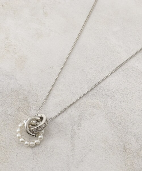 ビジューリングとフェイクパールリングを組み合わせたY字ネックレス。【デザイン】フェイクパールとビジューリングを組み合わせたネックレス。Y字ネックレスとしてはもちろん、パーツを動かすことで長さを調節できるので、その日の気分やコーディネートによって雰囲気を変えられるのもポイント。清楚なイメージのパール調アイテムは、結婚式や卒業式・入学式などのオケージョンシーンやパーティーシーンはもちろん、カジュアルな普段使いまでファッションを選ばずお使いいただけます。※照明の関係により、実際よりも色味が違って見える場合があります。また、パソコン・スマートフォンなどの環境により、若干製品と画像のカラーが異なる場合もございます。店舗へのお問い合わせ商品番号:769-82007●製品寸法:00:全長~68cm モチーフH1.6cm モチーフW1.4cm備考:
