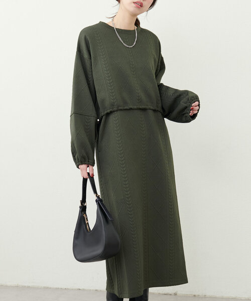 【2024AW natural couture】大人気のケーブルジャガードワンピースの新作■Design大人気のケーブルジャガードワンピースからセパレートタイプが新登場!セットでも、ワンピースだけでも、トップスだけでもお召頂ける万能アイテム。立体感のある柄がトレンドライクで、軽量で着心地が良いのが特徴です。ワンピースはゆとりのあるシルエットで抜け感がありながら、深めのネックが大人らしい印象を与えます。トップスはトレンドのドロストでお好みの形に調節できます。■Stylingセットでの着用はもちろん、セパレートでも着回しが効くアイテム。トップスはデニムやスカートなど、どんなボトムス合わせでも◎ワンピースはハイネックインナーと合わせたり、ブラウスできれいめに合わせても◎ウエストのドロスト部分を絞ればトレンド感のオシャレあるスタイリングに。■Fabric軽量でかろやかな生地感。※サイズ欄のサイズはワンピースのサイズです。サイズ補足:トップス 総丈 49cm / 身幅 56cm / 肩幅 56cm / 袖丈 48cm=========================お手入れ方法:手洗い透け感:なし裏地:なしポケット:ワンピースあり伸縮性:ややあり光沢感:なし生地感:軽やかな生地感=========================※着用、お取り扱いの際は、商品に付いている品質表示とアテンションタグを必ずご確認ください。【お気に入り登録でお得な情報がいっぱい】・「商品のお気に入り登録」で再入荷通知や、ラスト1点の通知、セール通知をいち早く受け取ることができます。・「ブランドのお気に入り登録」で新商品や再入荷など、お得な情報を受け取ることができます!※店舗の入荷時期は商品によって異なります。店頭の在庫状況につきましては各店舗にてお問い合わせください。※撮影時の光の関係で、画面上の画像と実際のお色とでは若干の色差が生じる可能性がございます。また、ご覧いただいているモニター画面や、お使いのブラウザによっても、お色の違いがございますことをあらかじめご了承くださいませ。202411292024AW_natu24AW