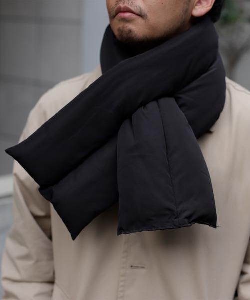 【デザイン】 ボリュームナイロンマフラー 差し込み式で簡単に装着出来る中綿マフラー。 程良いボリューム感で、しっかりと首を包み込みます。 通し穴に差し込むだけで付けることが出来るので、サッと着脱が出来ます。 軽量なナイロン生地なので、 長時間巻いていても負担が少ないのが嬉しいポイント。 シンプルなデザインなので、ユニセックスでお使い頂けます。 【サイズ等】 全長:縦 約112cm× 横 18cm 重さ:約143g 素材:ポリエステル ◆商品のお気に入り登録◆ 完売カラーの再入荷通知や、ラスト1点の通知、 セールの通知も受け取ることができますので、是非ご登録ください。 ◆ブランドのお気に入り登録◆ 新商品や再入荷などの情報を受け取ることができますので、是非ご登録ください。