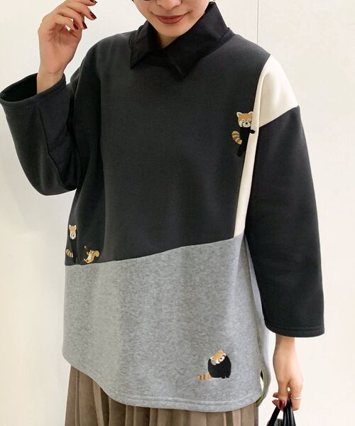 ブロック切替えと動物が可愛い裏起毛スウェット 3色をアシンメトリーに切り替えた存在感のあるトップス。 切替部分にレッサーパンダやペンギンの刺繍をあしらった遊び心たっぷりの1枚です。 動物の表情にも注目! 軽くて暖かい裏起毛なので寒い日もストレスフリーにご着用いただけます。 スリットから見える補強用の蛍光色のパイピングもさりげないポイントに。 ゆったりと着られるサイズ感が普段使いにぴったりなアイテムです。 裏地なし 伸縮性弱 薄手 織キズやだま等みられる場合もございます 洗濯:洗濯機使用可(ネット使用) ▼お気に入り登録でお得がいっぱい▼ ~商品をお気に入り登録~ 再入荷・ラスト1点などの通知を受け取ることができます! ~ブランドをお気に入り登録~ 《rps》の新商品・再入荷情報をいち早くお届け!