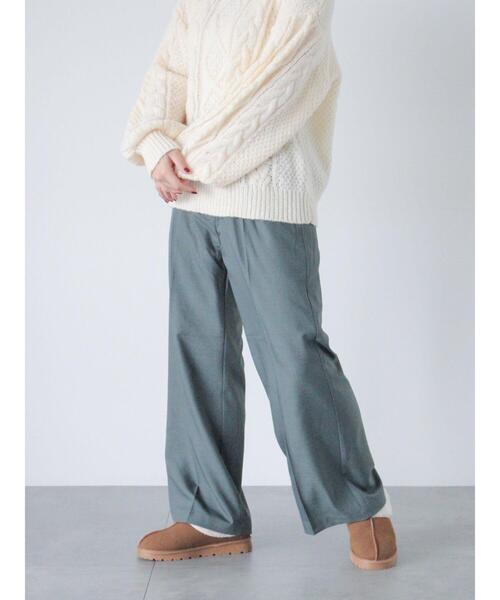 クロスウエストデザインがモードなニュアンスをプラスするスラックス。 センタープレスを効かせることできちんと感があり、すらっとした脚長効果も得ることができます。 後ろゴム仕様になっていて穿き心地が良いのも魅力ポイント◎ 普段使いはもちろん、お仕事やデートなどの様々なシーンに活躍してくれるアイテムです。 ※商品画像は、撮影環境やお客様のご利用のPC・スマートフォンのモニター環境などにより実物と色味に差異がある場合がございます。 【その他採寸】 F ウエスト:[後ゴム仕様]66cm
