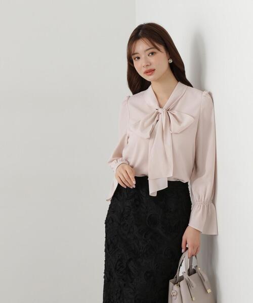 大きめのボウタイリボンが顔まわりを華やかに見せてくれる大人ブラウス。袖口をアシンメトリーにしたキャンディースリーブが、手元に動きをつけながら繊細な印象に。アウターもジャケットインも映えるキレイめブラウスは、オンオフ問わず着回せます。<素材>シアー素材を使用しています。<詳細>仕様・後ろボタン裏地・あり透け感・あり / 光沢・ややあり / 伸縮性・なし 生地の厚さ・薄手※モデルの着用画像の場合、光の当たり具合により、実際の色味と異なって見えることがございます。色味は、商品単体の画像をご参照ください。<商品のお気に入り登録>お気に入りアイテムの値下げ・再入荷・在庫1点などの通知を受け取ることができる便利機能ですので気に入ったアイテムはお気に入り登録がおすすめ!<ショップのお気に入り登録>新商品や再入荷、セール、クーポン配布などお得な情報を受け取ることができます。●撮影はサンプル商品で行っている為、仕様とサイズが異なる場合がございます。●スタジオ及び屋外で撮影した着用画像は、光の当たり具合で色味が違って見える場合があります。予めご了承ください。
