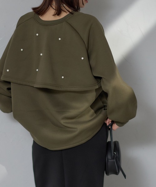 前後2WAYで気軽に雰囲気チェンジ!パールケープ裏起毛スウェット ■Detail パールがランダムについたケープがポイントの裏起毛スウェット 前後2WAYで着用可能で ケープをバックにもフロントにも持ってこれる仕様です 袖口リブで袖にボリュームがしっかりと出て 伸ばしても捲っても着用しやすくなっています ミディ丈でお尻にかかる丈感が体系カバーも◎ 裏起毛で暖かい冬にぴったりの1枚です ■Styling ケープを前にすると甘めな雰囲気が強くなるので シンプルでカジュアルなボトム合わせがオススメです バックケープにすると甘さを抑えられるのでスカートなどの甘めの雰囲気のアイテムと合わせて着用できます ■Material 柔らかく肌触りの良い裏起毛素材です 裏地:なし 透け感:なし 伸縮性:なし 生地の厚さ:厚手 ※詳しいお手入れ方法は商品タグをご参照ください。 スウェット/裏起毛スウェット/ケープ付/パール/パールケープ/前後2WAY/デイリー/高見え/ シンプル/着回し/春/夏/きれいめ/きれいめカジュアル/カジュアル/オトナカジュアル/大人カジュアル/高級感/華やか 【Information】 ◆《お気に入り登録》がオススメ◆ ・「商品のお気に入り登録」で再入荷通知や、ラストの通知、セール通知も受け取ることが出来ます。 ・「ブランドのお気に入り登録」で新商品や再入荷など、お得な情報を受け取ることが出来ます ※撮影時のライティング、ご覧になっているモニター・PC環境により、実際の商品と色味が異なって見える場合がございます。予めご了承をお願い致します。 ※ご注文いただいた予約商品のお届け時期の確認は、注文履歴ページより行えます。