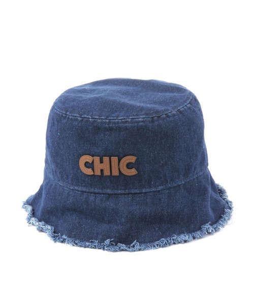 「CHIC」のロゴがポイントのフリンジデニムハット。デニム生地の裾部分にフリンジ加工を施したデザイン。内側にはアジャスター付きで、フィット感の微調整が可能です。