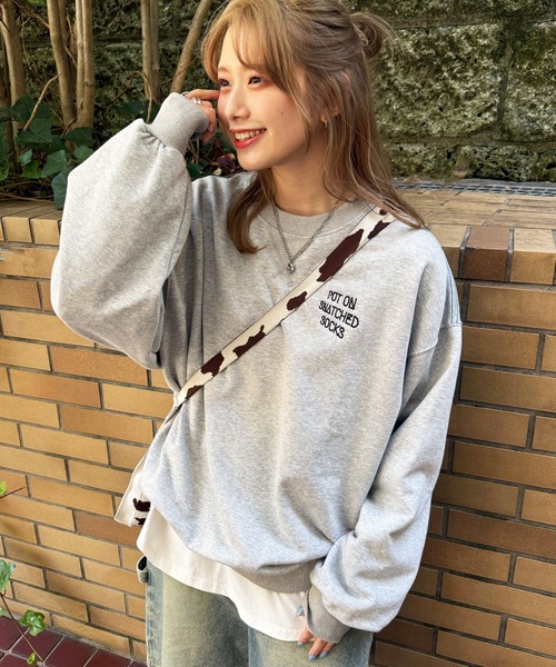 ■デザイン 靴下をモチーフにしたBACK刺しゅうの裏毛プルオーバー線画の刺しゅうに靴下がカラフルに配色されており、キャッチ‐なデザインに◎ FRONTは奥行きのあるロゴデザインがシンプルでおしゃれに着こなせます! ベーシックなオフホワイト、こなれ感のある杢グレー、コーデの主役になるオレンジの3色展開です。 ■素材 ・伸縮性:なし ・透け感:なし ・裏地:なし ・光沢感:なし ※生地寄りの画像が実際の色味と近いものとなります。 ※ご覧のモニター環境や撮影環境により実際のカラーと異なる場合がございますので 画像をご参照の上、ご了承頂けますようお願い致します。