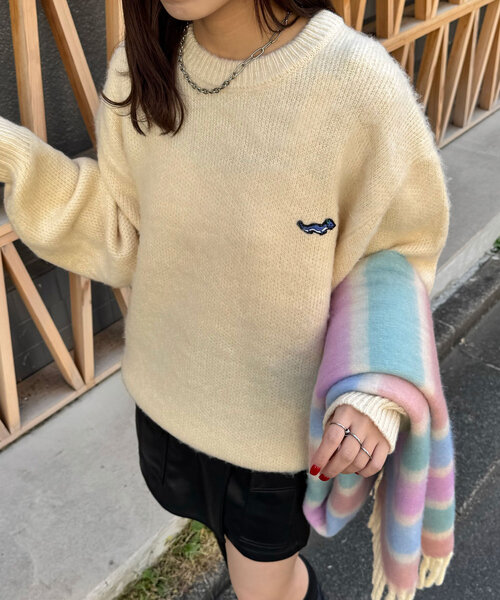 デイリーに着まわしたいシャギーニットプルオーバー▼ポイント暖かくてリラックス感たっぷりのシャギーニットプルオーバー。トレンド感たっぷりのルーズなサイズ感が今っぽい印象に。胸元のワンポイント刺繡がコーデのアクセントに。シンプルでゆったりとしたデザインは、どんなコーデにも合わせやすく、リラックス感とおしゃれを両立できる一着です。▼スタイリングシンプルなデニムやワイドパンツと合わせて、カジュアルでリラックス感のあるスタイルに。シャツや、ロンTをレイヤードしたスタイリングも◎足元はスニーカーやローファーで軽やかに仕上げるのがおすすめです。---------------------------------------------------透け感:なし伸縮性:あり裏地:なし光沢:あり---------------------------------------------------家庭洗濯:40℃限度/手洗い可タンブル乾燥:不可アイロン:低温110℃まで※スチームなしクリーニング:石油系溶剤による弱いドライクリーニング可,非常に弱い処理によるウェットクリーニング可---------------------------------------------------※着用、お取り扱いの際は、商品についている品質表示とアテンションタグを必ずご確認下さい。※画像の商品はサンプルです。実際の商品と仕様、加工、サイズが若干異なる場合がございます。※可能な限り実物に近いカラーにて掲載していますが、撮影環境やモニター環境などにより製品と画像のカラーがやや異なって見える場合もございます。予めご了承ください。【お買いものをよりお楽しみいただく為に!!】▼商品のお気に入り登録(ハートマークをクリック)お気に入りアイテムの完売カラーの再入荷通知や、ラスト1点の通知、セールの通知も受け取ることができます。▼ブランドのお気に入り登録新商品や再入荷、クーポン配布などのお得な情報を受け取ることができます。