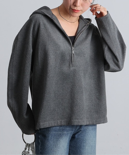 【オーバーサイズなカジュアルハーフジップ】微起毛タイプのハーフジップアイテムが登場ヒップまで隠れる長めの丈感で体形カバーも◎寒い時期には中にタートルネックを仕込んでも可愛く着ていただけます【商品ポイント】・ラフにおしゃれ見えするフード付き・身幅ゆったりめ・シンプルなデザインで着回し力抜群----------------------------------------------------■商品特徴洗濯方法:洗濯機洗い可(弱)裏地:なし透け感:なし伸縮性:なし光沢感:なし生地の厚さ:普通----------------------------------------------------■素材本体: ポリエステル71%,アクリル17%,綿5%,ナイロン4%,レーヨン3%別布部分: ポリエステル100%----------------------------------------------------※着用、お取り扱いの際は、商品についている品質表示とアテンションタグを必ずご確認下さい。※商品タグに記載されている商品名がWEBでの表記名と異なる場合があります。※画像の商品はサンプルです。実際の商品と仕様、加工、サイズが若干異なる場合がございます。 ※照明の関係により、実際よりもやや明るく見える場合がございます。またパソコンなどの環境により、若干製品と画像のカラーが異なる場合もございます。予めご了承くださいませ。【お気に入り登録】してお得な情報をCHECK!!・「商品のお気に入り登録」で再入荷通知や、ラストの通知、セール通知も受け取ることができます。・「ブランドのお気に入り登録」で新商品や再入荷など、お得な情報を受け取ることができます。