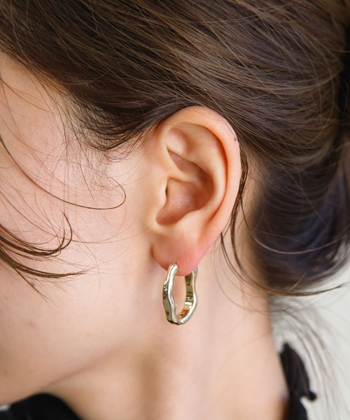 ウェーブラインが特徴のフープピアスニュアンスのあるウェーブが印象的なピアス。角度によって表情が変わり、大人っぽい雰囲気でお付けいただけるデザイン。シンプルながらさりげなく顔回りを華やかに魅せてくれる優秀アイテムです。【2024 Autumn/Winter】【24AW】重量(片耳) : 約4.5g※商品画像は、光の当たり具合やパソコンなどの閲覧環境により、実際の色味と異なって見える場合がございます。予めご了承ください。※商品の色味の目安は、商品単体の画像をご参照ください。▼お気に入り登録のおすすめ▼お気に入り登録商品は、マイページにて現在の価格情報や在庫状況の確認が可能です。 お買い物リストの管理に是非ご利用下さい。