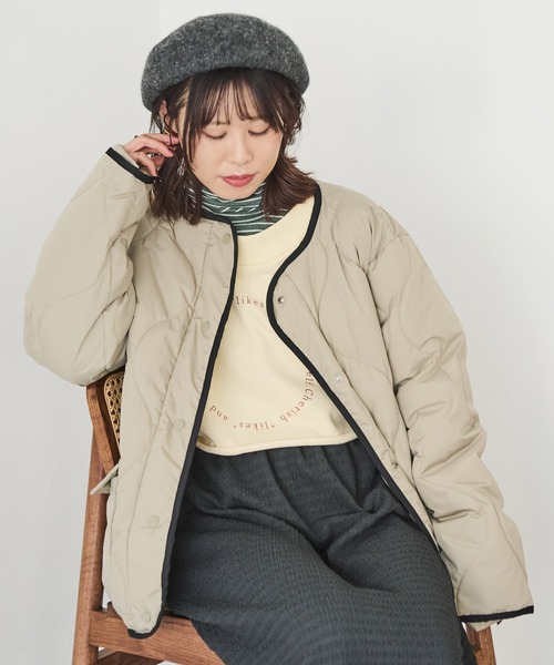 バイカラーのパイピングが目を惹くキルティングジャケット。 こなれ感のある波キルティングで旬なスタイリングが叶います。 フラップが付いた大きめのパッチポケットもポイントに。 首元はノーカラーで顔周りはすっきりと見せてくれます。 さり気ないサイドのカーブスリットが大人っぽく抜け感を演出します。 太めのパンツを合わせてカジュアルにもスカートやワンピースと女性らしく着こなすのも◎ ナチュラルなカラー展開でデイリー使いにぴったりの1枚です。 ※生産の工程上ポケット部分に穴を開けていますが、ヒートカット処理をしている為、これ以上広がることはありません。 あらかじめご了承くださいませ。 袖口は捲って抜け感のある着こなしも楽しめます。 ゆったりとしたシルエットで体型カバーにも◎ 柔らかな印象の波キルティングが魅力的。 ソフトな風合いで暖かく着ていただけます。 - - - - - - - - - - - - - - - - - - - - - - - - - - - - - - - - - 透け感:なし 裏地:あり 伸縮性:なし 光沢感:なし ポケット:あり - - - - - - - - - - - - - - - - - - - - - - - - - - - - - - - - - ※ サンプル商品で撮影をしております。生産時の生地のロット違いによる色の差が生じる場合もございます。不良品ではございませんのでご了承くださいませ。 ご不安のある方、ご理解いただけない方に関しましては、大変心苦しい限りではございますがご購入をご遠慮いただけますようお願いいたします。 冬物/ライトアウター/淡色