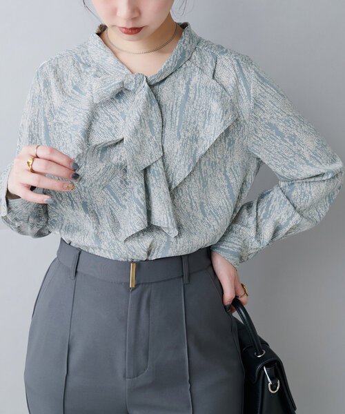 【2025SS natural couture】ほど良く甘い他にないディテールのブラウス■Designラッフル×ボウタイの贅沢ブラウス。甘めに見えがちなフリルですが、首がつまりすぎてないデザインで抜け感が出て大人見え。シンプルながらも1枚でコーデが決まる主役級デザイン。オフィスにもお出かけにも使える万能アイテムなので一枚持っていて損無しです!■Stylingマーメイドシルエットやフレアラインのスカートにウエストインして頂くと、シンプルながらも大人レディな印象のコーデに仕上がります。デニムはもちろん、フレアパンツやスラックスなど、カジュアルなアイテムとの相性も◎きれいめパンツやワンピース、ジャケットなどでセレモニー、オケージョンとしても対応可能です。■Fabricさらっとした生地感。ご自宅でのお手入れもしやすく、ロングシーズンお楽しみ頂けます。=========================お手入れ方法:手洗い透け感:淡色系ややあり裏地:なしポケット:なし伸縮性:なし光沢感:なし生地感:さらっとした生地感=========================※着用、お取り扱いの際は、商品に付いている品質表示とアテンションタグを必ずご確認ください。【お気に入り登録でお得な情報がいっぱい】・「商品のお気に入り登録」で再入荷通知や、ラスト1点の通知、セール通知をいち早く受け取ることができます。・「ブランドのお気に入り登録」で新商品や再入荷など、お得な情報を受け取ることができます!※店舗の入荷時期は商品によって異なります。店頭の在庫状況につきましては各店舗にてお問い合わせください。※撮影時の光の関係で、画面上の画像と実際のお色とでは若干の色差が生じる可能性がございます。また、ご覧いただいているモニター画面や、お使いのブラウザによっても、お色の違いがございますことをあらかじめご了承くださいませ。202412062025SS_natu25SS