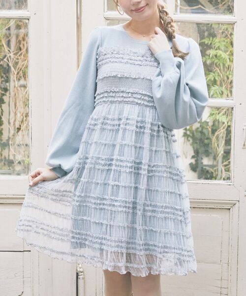 もちもちとした肌触りのニットにドットとフリルがかわいいチュールを施した、リラックスした着心地ながらきちんと感が出せる冬に嬉しい一枚。胸元はシャーリングになっていて優しく体にフィットしてくれます。身体のラインを拾いにくいAラインでゆったり着用できるのもうれしいポイント。大人かわいいこだわりのミニ丈でブーツやタイツなどと、秋冬ならではのおしゃれを楽しめます。クリスマスデートにもおすすめ!【素材】レーヨン混のキレイ目ない糸で編みたてたニットを使用しております。チュール部分はフリルとドットを施した素材を使用しております。【お手入れ方法】手洗いがおすすめです。チュール部分のひっかけにご注意お願いいたします。また、チュール部分にはアイロンをかけないでください。透け感[なし]生地の厚さ[厚手]光沢感[なし]伸縮性[あり]裏地[なし]ポケット[なし]※モデル着用画像は、光の当たり具合で色味が違って見える場合がございます。※お使いのモニター環境によって商品の色味が違って見える場合がございます。▼ 気になった商品はお気に入り登録がおすすめ ▼商品ページ内の ♡ ハートマークをクリックしてお気に入り登録しておけば、 他アイテムとの比較やお値下げのチェックも楽に行えます!ぜひ、お買い物する際にご活用下さい。