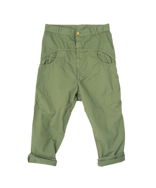 柔らかいコットン素材を使用したサルエルパンツ。後ろもも部分のブランドロゴのステッチが特徴。ブランドオリジナルの金ボタンがアクセントに。この製品は独特な風合いを出すため、製品加工を行っております。1点ごとにサイズや風合い等、特徴が異なりますのでご了承ください。Torso:H180 C87 W78 H86 着用サイズ:03サイズ