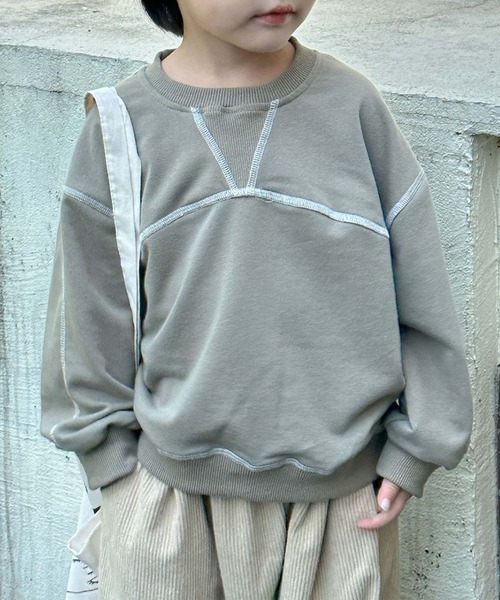 シンプルながらも配色ステッチがアクセントになっているスウェット。ユニセックスなデザインなので、男の子も女の子もお洒落に着こなせます。ゆったりとしたドロップショルダーが特徴で、動きやすく快適な着心地を実現。袖口と裾はリブ仕様で、スウェット特有のカジュアル感をプラス。デニムパンツやカーゴパンツを合わせてカジュアルに。女の子はスカートを合わせても◎シンプルなデザインなので、普段使いにぴったりです♪