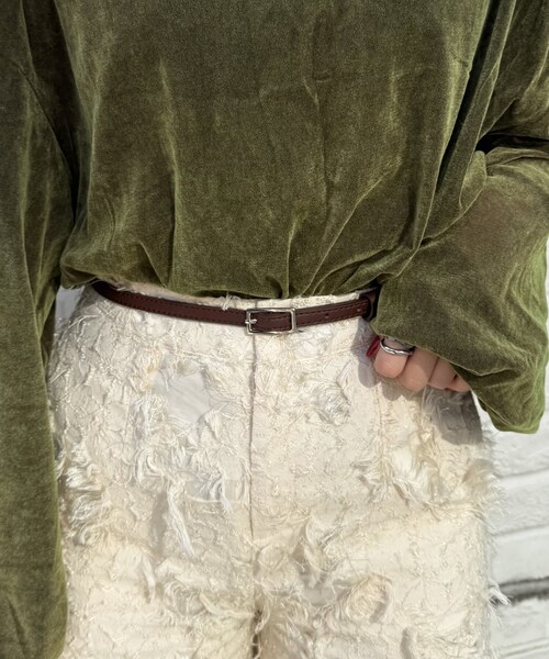 ニュアンス感溢れるフェイクレザーベルトシンプルなデザインで、どんなコーディネートにも合わせやすいベルトです。きれいめスタイルや大人のカジュアルスタイリングまでマッチする仕上がり。デイリーにもオフィスにも幅広く使えるので、1つ持っていると重宝すること間違いなし◎[Point]○定番シンプルなフェイクレザー細ベルト○太すぎない幅で使いやすい