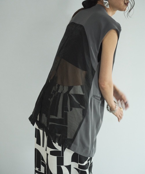 ー ディテール ー 顔周りをすっきりと見せてくれるノーカラーと オーガンジー切り替えがアイキャッチなバックスタイル。 肩回りもカバーしてくれて、ノースリーブでも気にならずに着用できます。 【色味に関しての注意事項】 商品画像は、ストロボなど撮影機器の使用や光の当たり具合、 お使いのスマートフォンやパソコンなどの閲覧環境により、実際の色味と異なって見える場合がございます。 予めご了承ください。 【SNS動画掲載アイテム】 @aic_official 上記の公式インスタグラムアカウントにて着回し動画を掲載しております。 是非ご覧くださいませ。 ★お取り扱い注意事項★ 下記をご確認いただきご了承の上、ご購入ください。 ・着用中の摩擦などにより、ピリング(毛玉)が生じる場合があります。 ・洗濯の際は色落ちしますので単独で洗い、湿気を含んだ状態や水につけたままで放置しないでください。 ・濃色の製品は、摩擦や汗、雨などで濡れると、ほかの衣料に色移りする場合がございますので、充分ご注意ください。 ・商品の写真はサンプル品を撮影している為、実際の商品とは仕様や加工、加工によるダメージ、サイズ等が若干異なる場合もございます。 ・初回販売分と生産時期の異なる商品は、色味や加工等若干異なる場合がございます。 ・システムの都合上下げ札の税込み価格表記が商品ページの税込み価格と1円ずれている場合がございます。 ・掲載画像の商品の色味は、屋外や屋内の光の照射や角度により実物と色味が異なる場合がございます。 また表示のサイズ感と実物は若干異なる場合もございますので、 ・着用、お取り扱いの際は、商品についている品質表示とアテンションタグを必ずご確認下さい。