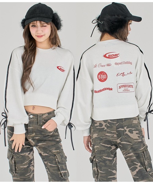 ANAP GiRL 【ティーンズライン】 最強盛れる☆がキーワードの大人っぽUPNEXTラインがANAPGIRLからデビュー! ANAPGIRLのサイズアウトはもちろん小柄な大人の方にもおススメです。 袖のリボンデザインがアクセントになったスウェットトップス。 ●バックに散りばめられたロゴでバックスタイルも抜かりなく可愛いのが嬉しいポイント。 ●程よいオーバーサイズでゆるっと着こなせるのが魅力です。 ●トレンド感のあるクロップド丈で腰周りはすっきりしているため、どんなボトムスとも合わせやすくスタイル良く決まります。 ●ワイド目なデニムやカーゴパンツと合わせてかっこよく着こなすのがオススメ◎ <サイズ> M(155cm~165cm) L(165cm~) ※ストレッチあり※裏地なし ※商品のお取扱いに関しましては、商品に付属のアテンションカード、洗濯ネームをご覧ください。 ※モデル着用画像は光の当たり具合で色味が違って見える場合がございます。 ※商品の色味の目安は、商品単体の画像をご参照ください。 【お買いものをお楽しみいただく為に!】 ▼商品のお気に入り登録 完売カラーの再入荷通知や、ラスト1点の通知、セールの通知も受け取ることができます。 ▼ブランドのお気に入り登録 新商品や再入荷など、いち早くブランドのお得な情報を受け取ることができます。