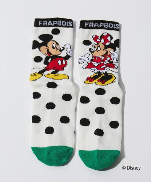 大きくて丸い耳、豊かな表情、かわいいしぐさが世界中で愛されているキャラクター「ミッキーマウス」。 そんなミッキーマウスのデザインを使い、レトロでリラックスした世界観を出したデザインと形でスペシャルなコレクションが実現。 【素材】 肌触りがよく、ストレッチ性のある綿ポリエステルの糸を使用したソックス。 【デザイン】 小さなドット柄のソックスの正面にミッキーとミニーの柄が大胆に入ったソックス。 履くとミッキーとミニーが見つめあうデザインになっています。 履き口にはフラボアロゴが入っています。 *こちらの商品はユニセックス商品です。 Fサイズ:24~27㎝ 【ブランド情報】 FRAPBOIS/フラボア 2001年にブランドスタート。 「大人げない大人の服」をコンセプトに、大人が着るリラックスしたデイリーウェアを提案するコレクションブランド。 レディースとメンズのアイテムをご用意しています。 ---------------------------------------------------------------------- 【お気に入り登録】がおすすめです。 ■商品のお気に入り登録 再入荷、残り1点、セールなどの通知を受け取ることができます。 →商品ページ ♡ をクリック ■ショップのお気に入り登録 新商品や再入荷、セール、クーポン配布、ショップニュースなど、いち早くショップの情報を受け取ることができます。 →「♡お気に入りショップに追加」 をクリック ----------------------------------------------------------------------